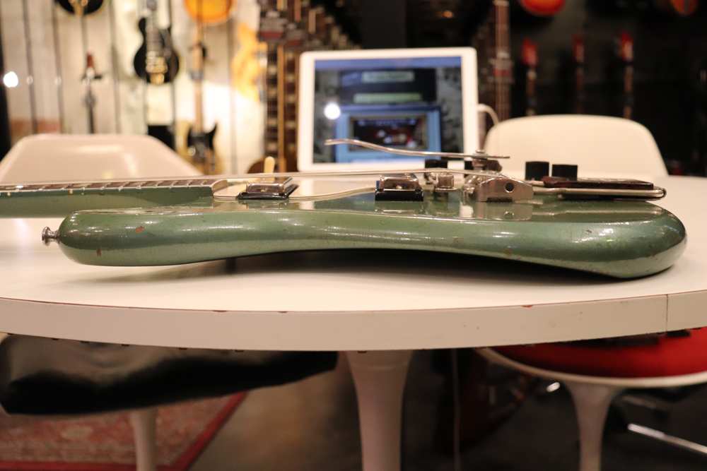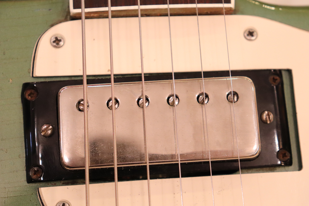 同年代の同位機種、ギブソン“SG・スタンダード“にも、少数ですが、同じカラーのカスタムカラーの機体が存在しますが、近年では非常に高額なプライスタグがつけられているコレクターズ・アイテムです