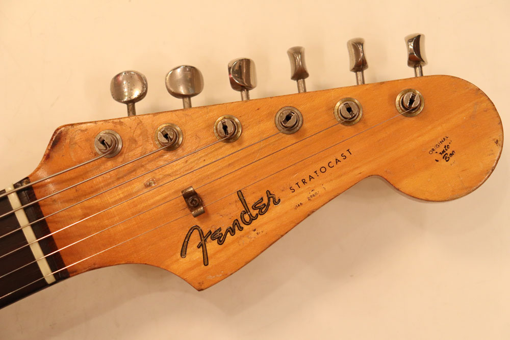 内容は、ピックアップはオリジナル・ブラック・ボビン・ピックアップにポットデイトも63年製、その他の主なパーツもオリジナルですが、ペグが一度別の物が取り付けられていたようですが、現在はオリジナル・クルーソン・ペグに戻されています