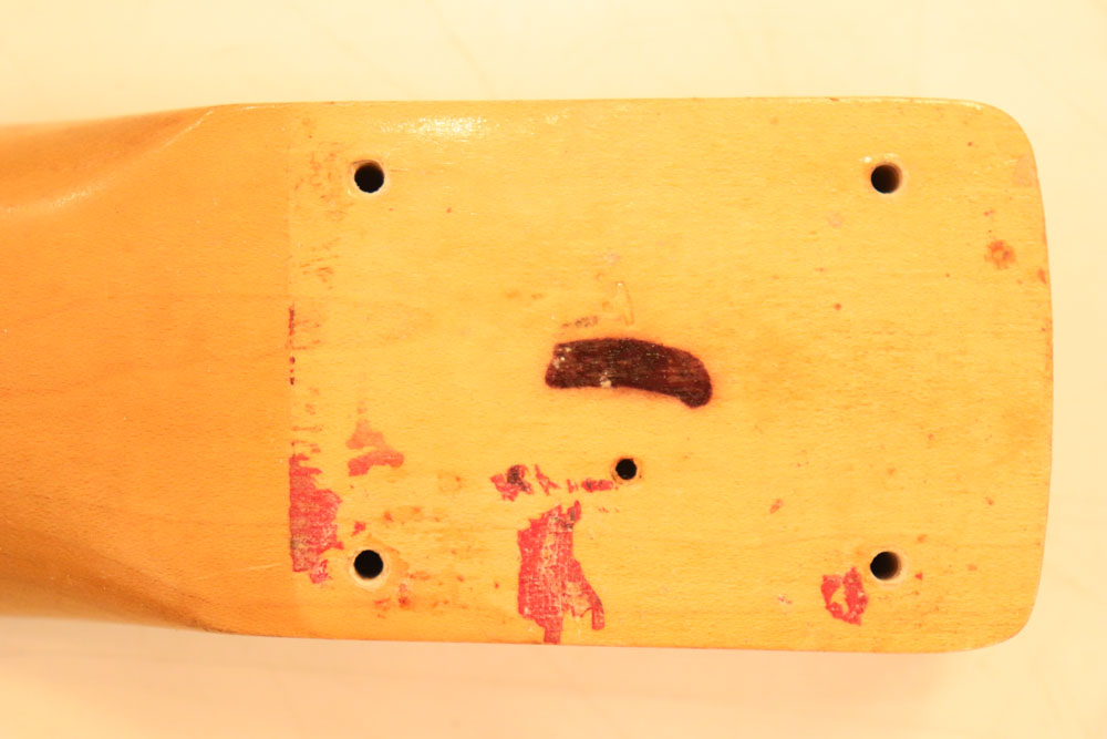 フェンダー社がギブソン社を意識して試験的に使用した、ボディにマホガニー材を使用した機体は、同時期にテレキャスターにも使用されており、どちらのモデルもフィニッシュはチェリー・レッド・フィニッシュと、やはりギブソン社を意識したフィニッシュながら、マホガニー材に対するシーラー等の下地の処理が上手くいかなかった様で、どのマホガニー材ボディの機体も、塗装の部分的な剥離等が起こってしまい、フェンダー社ではマホガニー材の正式な採用は見送られたようです
