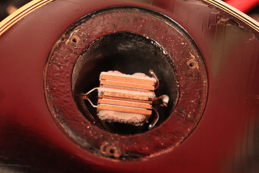 その他のパーツは、ブリッジサドルがヴィンテージのブラス製の物を搭載していますが、他はパーツもオリジナルです