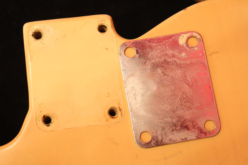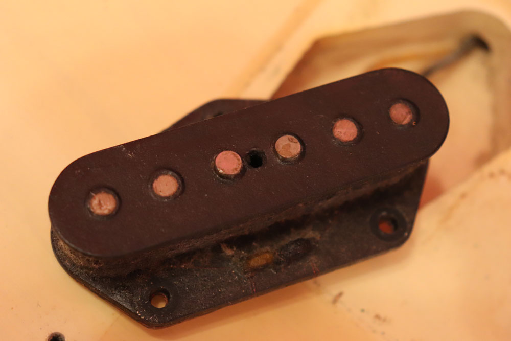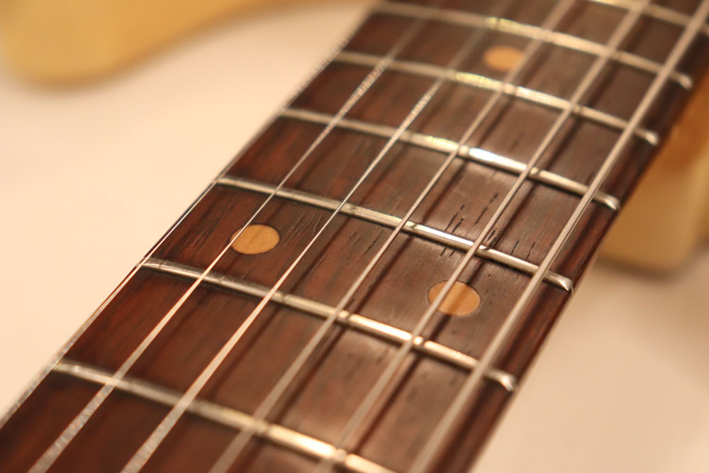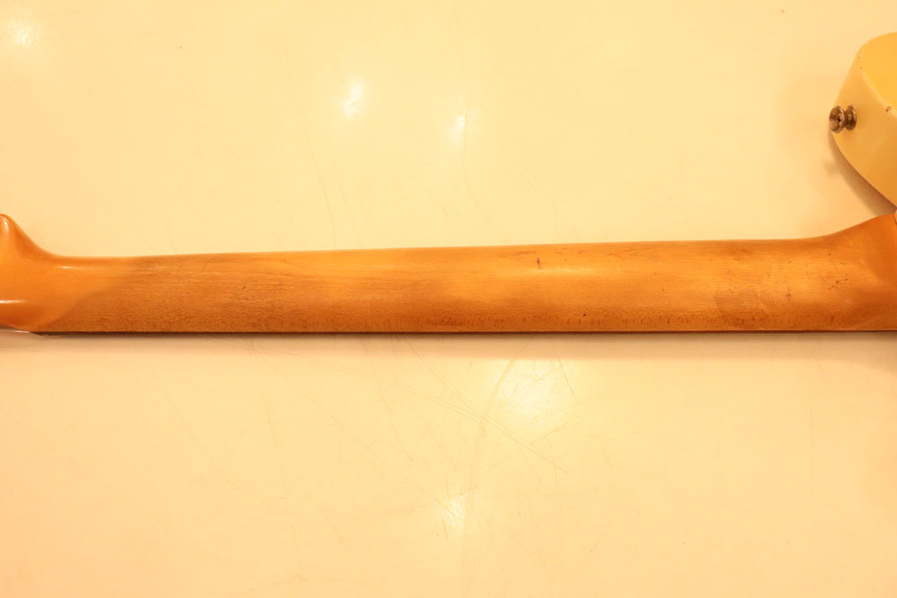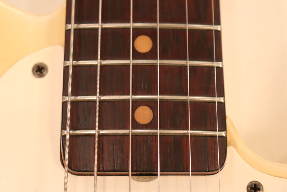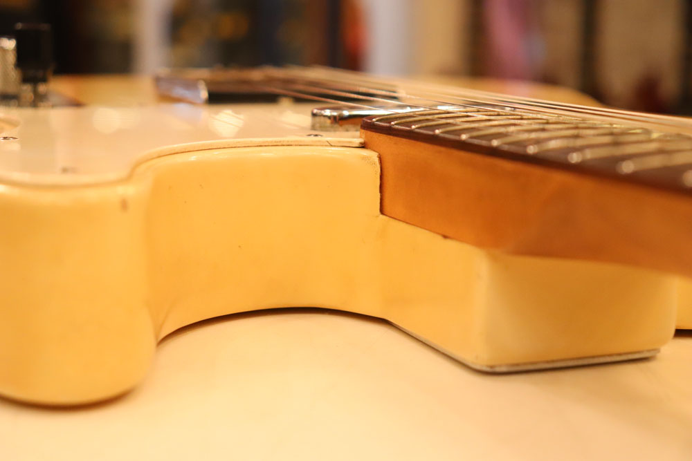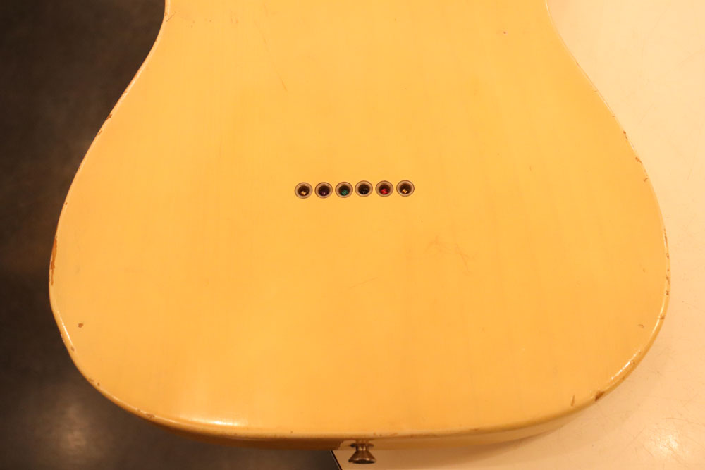 内容も、太いゲージしか存在しなかった新品時のスリットが大きいオリジナルのナットから、現在のゲージに合う様にナットがリプレイスされていますが、その他はオール・ストレートのフル・オリジナルです