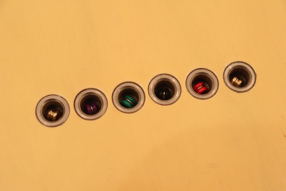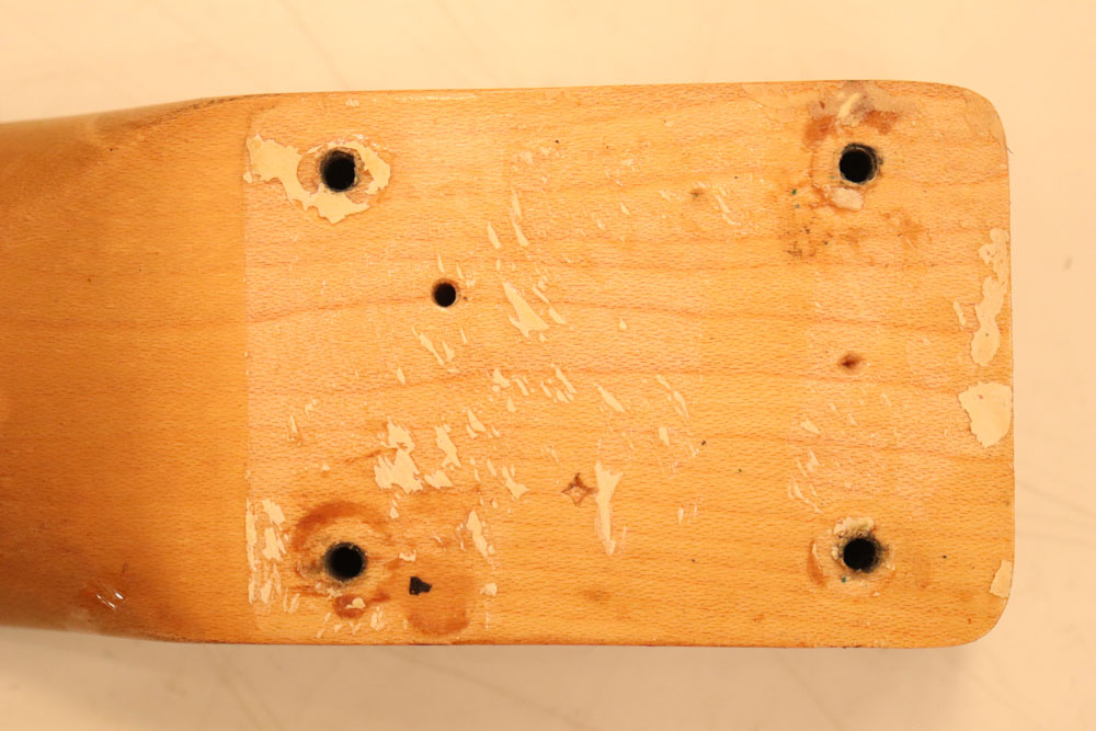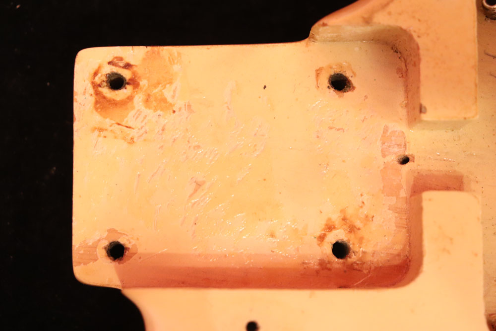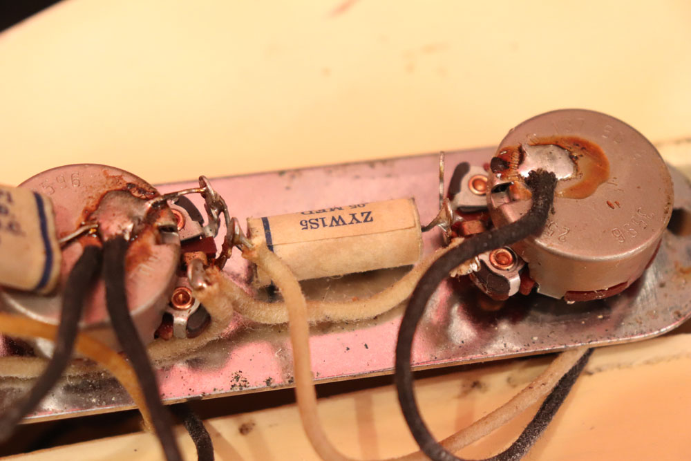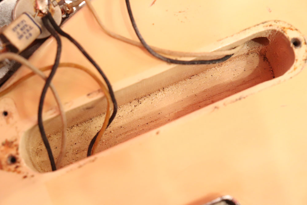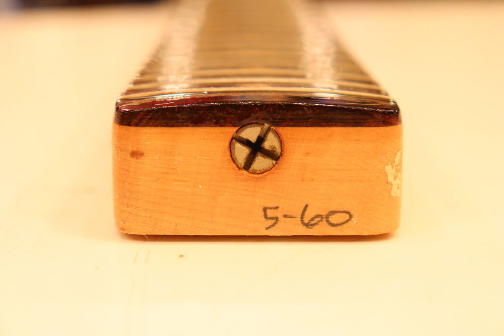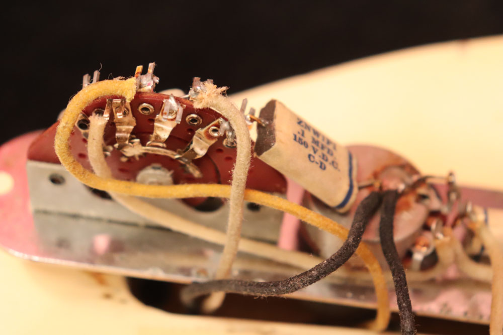 内容も、太いゲージしか存在しなかった新品時のスリットが大きいオリジナルのナットから、現在のゲージに合う様にナットがリプレイスされていますが、その他はオール・ストレートのフル・オリジナルです