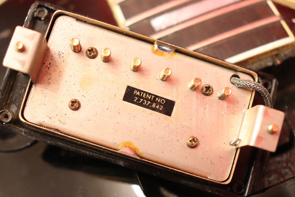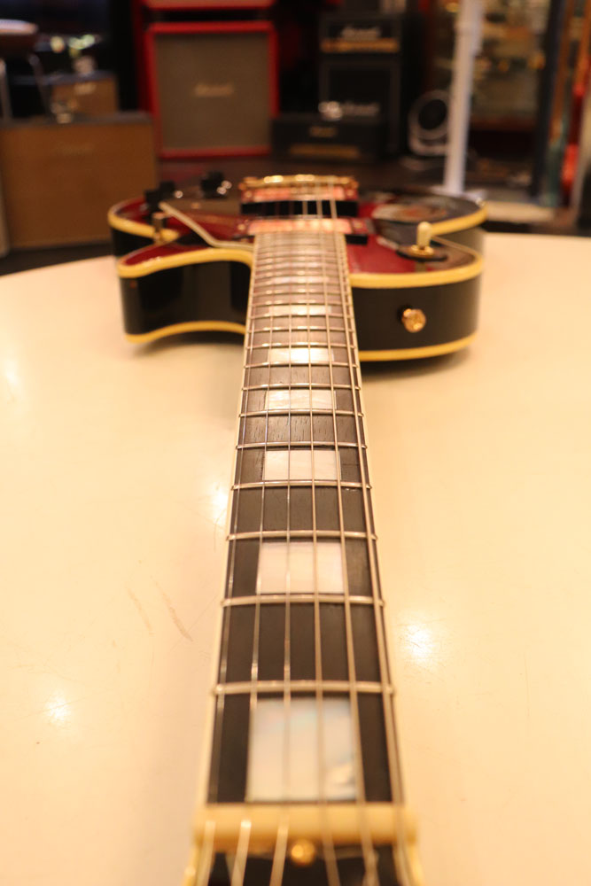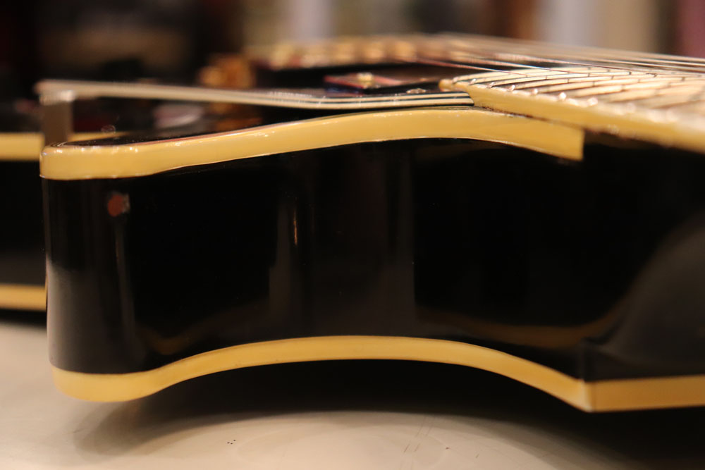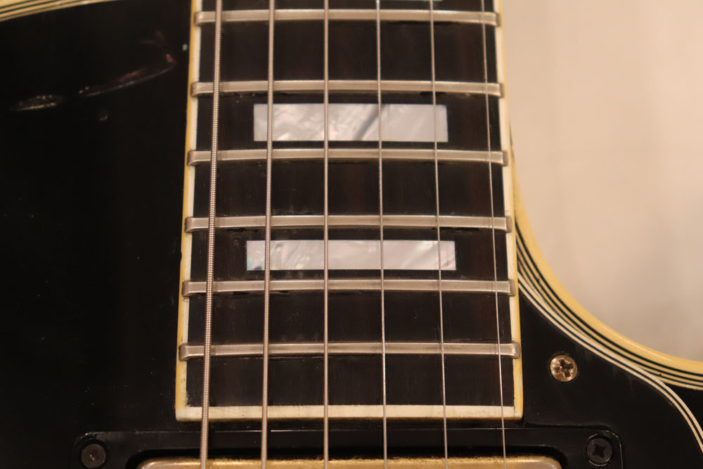 ロング・テノン・ネックジョイント、ギブソン・ヘッドロゴの“i”ドットや68年デイトのポットの使用等、完全に68年スペックですが、近年の資料的には69年シリアルに属した、69年超最初期のトランジション仕様のレス・ポール・カスタムで、この仕様は僅か400本少ししか生産されていません