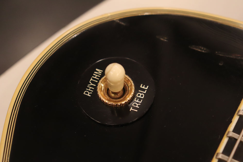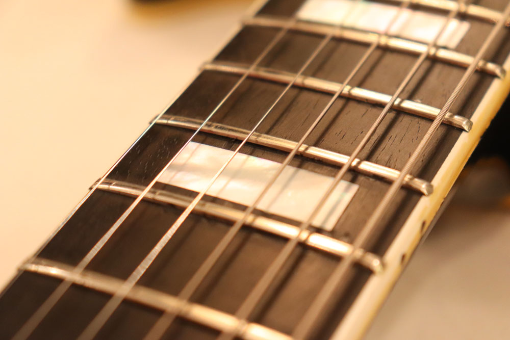 しかも、ヘッドの”Gibson“ロゴには、68年迄の仕様の“I”・ドットもインレイされた、50年代と同形状のMOPシェル製のヘッド・ロゴ仕様!
