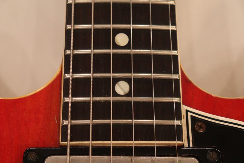 一般的な資料によれば、“335”のチェリーレッドは60年に生産された”21本“が最初となりますが、ギブソン社内の出荷台帳によると、58年に1本、59年に6本、60年に21本、全てオーダ品(個人的なオーダーでは無く、当時の有力ディーラーからだと思います)だったと言われています