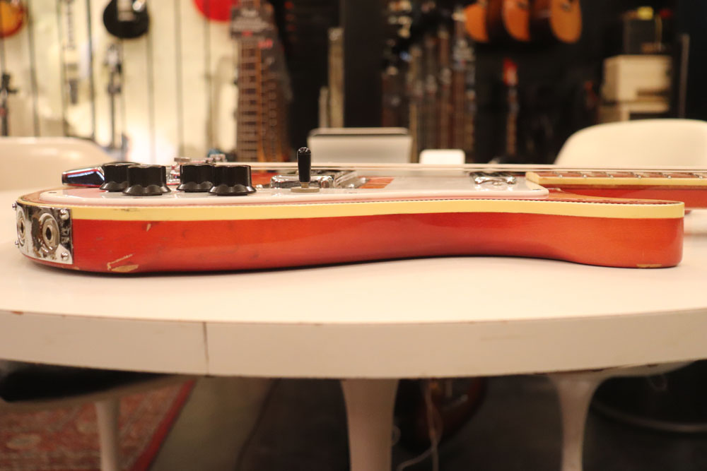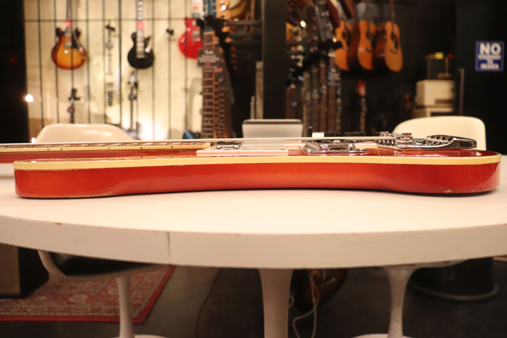 ノン・アクロスド・トライアングル・インレイ仕様フィンガーボードの73年後期製で、フロント・ピックアップはトースター・ピックアップ、リア・ピックアップにはハイゲイン・ピックアップを搭載しており、このモデル中ではバランスの良い音量とサウンドで、プレイヤーにも人気の高い仕様です