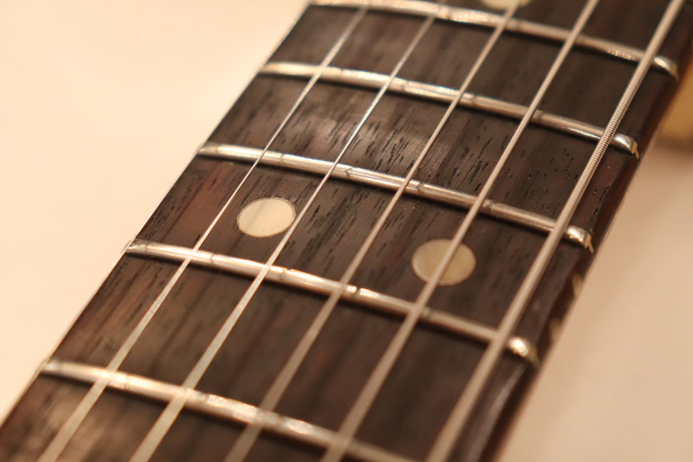 内容も、ナット、フレットはリプレイス済みでプレイアビリティも良い状態で、パーツはセレクター・スイッチ、